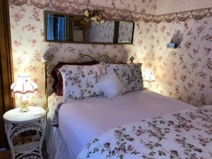 Last, but not least, The Rose Garden has been completely renovated. In keeping with the theme, we have installed new wallpaper and borders with beautiful roses in both the bedroom and the bathroom. New carpeting and curtains, new lamps, refreshed wicker furniture, and a new electric fireplace have completed the look in the bedroom. The bathroom has been updated with new fixtures and lighting.
