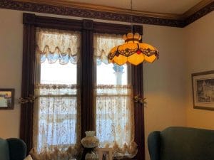 It was time to update three areas of the inn this winter. While the photos are not professional photos, we think this will give you a sense of the new look. The parlor has been completely refreshed, with new carpeting, paint and light fixtures. While the former stenciling has been covered, we love the new burgundy and gold border, and especially the gleaming gold crown molding!